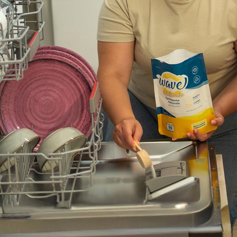 • Като добавка към перилен препарат: Добавете 1-2 супени лъжици карбонат (около 15-30 г) директно в барабана или отделението за перилен препарат, за да подобрите ефективността му.